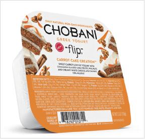 主打“酸奶+零食”的Chobani Flip向其Flip产品线添加了新的独特风味,这一系列酸奶产品采用“子母杯”式的包装。食用时,可以将混合好的零食倒入到酸奶之中。新的风味包括“胡萝卜蛋糕”及“s'more”等品种。(注:s'more是一种北美的常见食物,通常由两块饼干夹着一块棉花糖和一块巧克力。)