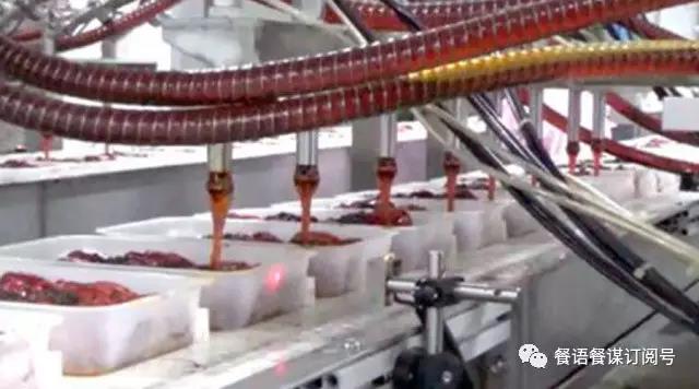 工厂所在地的半径100公里以内,基本占全国20-30%的小龙虾产量。信良记收的是通货,免去了虾农的分选,周围虾农都直接把货送到厂里。后面全部通过流水线清洗、分选、加工,成品出来后再冷链送到门店。到店之后只要简单加热就可出品,省去了洗虾的人工,省去了厨师,同时保证了口味的稳定。