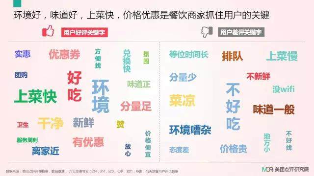 数据显示,环境好,上菜快、便宜好吃等关键词成为了消费者点评餐厅的关键词,所以在消费升级的情形下,产品也要升级。