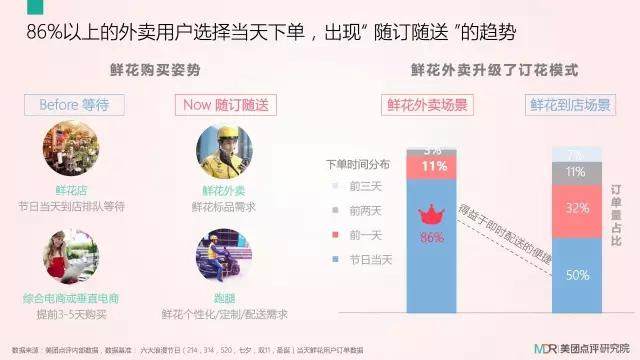 值得一提的是,随着消费升级,人们享受浪漫的方式也发生了改变,外卖、跑腿等即时配送成了订花新模式。