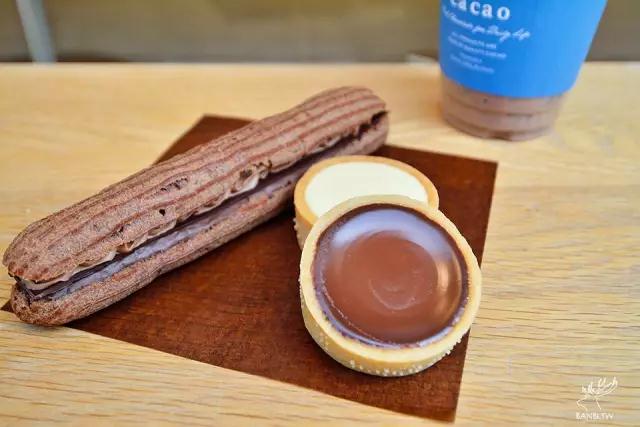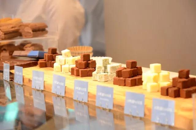 店里有卖生巧克力、巧克力塔、闪电泡芙、冰淇淋、马卡龙、饮料、巧克力大福、巧克力布丁,都是以黑巧克力或白巧克力作为原料。