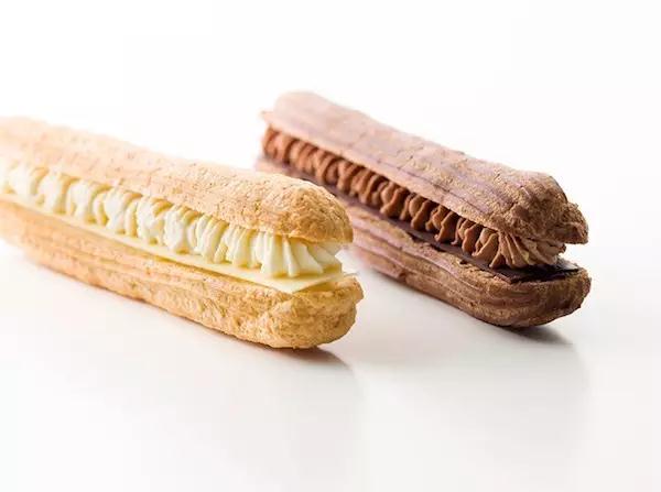 这款长约17厘米的条形闪电泡芙也是店内的必点美食。仔细看,在巧克力花馅下面,竟然又多压了一层巧克力片,口感丰富,实在是满足了巧克力爱好者的期待!双重的浓郁巧克力,加上酥脆的泡芙外皮,成就了这款独一无二的闪电泡芙。