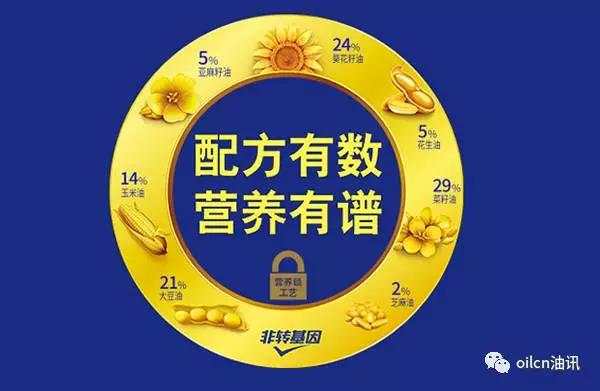 29%菜籽油、24%葵花籽油、21%大豆油、14%玉米油、5%亚麻籽油、5%花生油和2%芝麻油,
