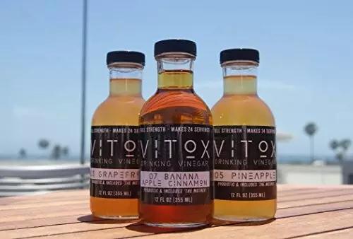这种超酸的浓缩果醋是由冷榨菠萝汁,苹果醋和有机蒸馏制取的甘蔗汁混合后,经天然发酵而制成。一瓶12盎司的产品可做成24份饮料,在水中添加一茶勺浓缩果醋并均匀搅拌即可得到一杯极具营养的饮料。产品建议零售价20美元,有一点小贵,但是每一瓶都经过14天的发酵,含有丰富的平衡肠道的有益菌。