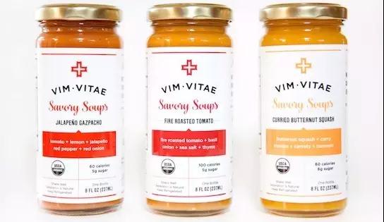这款可爱的小瓶装汤饮全部使用有机原料,包括南瓜、扁桃仁奶、胡萝卜、姜、海盐、姜黄、咖喱粉和醋。这是一款含糖非常低的餐馆级别的汤,含60卡路里,素食,无麸质,采用玻璃瓶包装而非塑料瓶,不仅仅是因为玻璃瓶可重复使用,也暗示着此款产品是值得品尝的一款美食,建议零售价4.99美元。