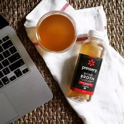 这款独特美味产品的核心配料是草饲牛骨汤,除此之外,产品中还添加了椰子醋、香菇、黑胡椒和姜。产品可以冷藏后饮用,也可以加热后作为营养便餐。每瓶中含有130卡路里,8g蛋白质,建议零售价4.99美元。