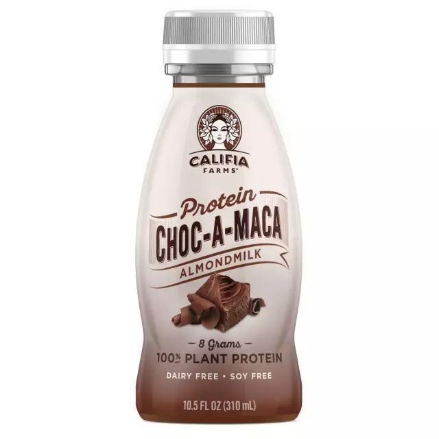 Califia将其特有的扁桃仁奶,豌豆、糙米蛋白、可可及1000mg来自秘鲁的玛咖混合得到了这款产品,富含蛋白质,素食且不含大豆成分,具有纯正的巧克力风味。每瓶10.5盎司,含有160卡路里,建议零售价:2.49美元。