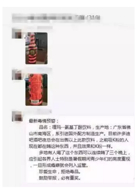 近日,一条“最新毒情预警”的信息在各微信群、朋友圈掀起了一阵转发热潮。消息称,“有一款名叫咔哇的饮料,人喝了可以连续嗨三个晚上,据说之前吸K粉的人很多都嗨这种东西,效果和K粉一样。”