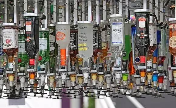 但不同于其他酒吧的是,这家酒吧的装修风格充满现代的科技感,自动化的技术搭配智能的工作流程,酒瓶也悬挂空中,仿佛在拍科技大片的即视感。