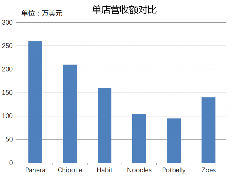 Panera Bread的单店营收能达到250万美元以上,超越了其他同类的竞争对手,也会高于Chipotle。