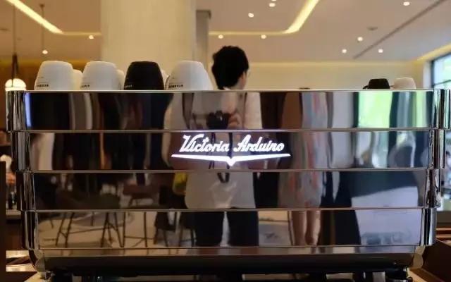 比如这里出现了少数臻选店才有的白鹰半自动咖啡机,以及手冲咖啡台,还有人数不少的星巴克黑围裙 Coffee Master。