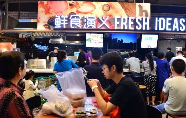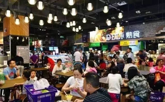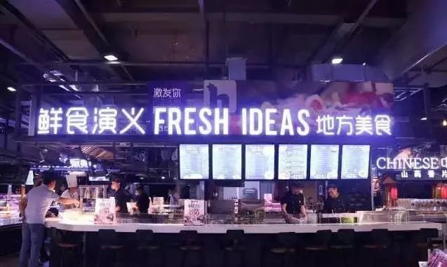 超市大卖场不仅可以购买食材,还可以实现聚散的社交场所,鲜食主义相当于大卖场里的自营主力店、国际美食、地方美食、海鲜体验馆、街头小吃、果饮水吧等五个板块,甚至还提供牛排、海鲜、烧烤、特色快餐等堂食餐饮,面积将近1000平米。