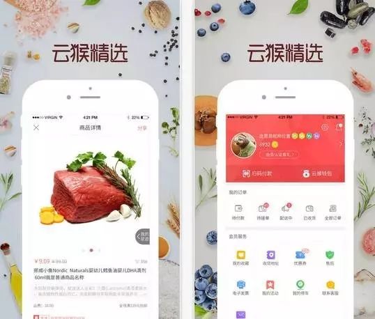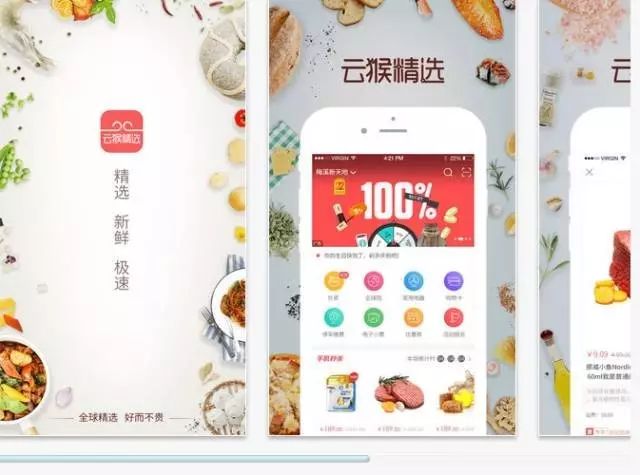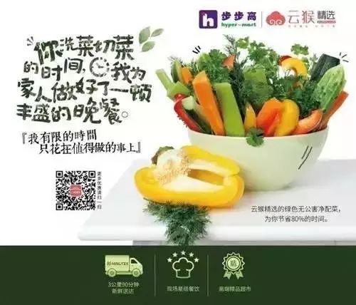 “直采自营供应链+精品超市+品质餐饮+云猴精选APP在线配送”