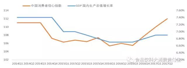 国内经济自去年底以来呈现回暖趋势,2017年上半年,我国GDP增速为6.9%,相较去年同期6.7%的增速有所提高;同时,国内消费者信心指数也显现出明显地回升, 2017年二季度提升至112,达到近三年以来最高水平。受益于经济回暖以及居民消费意愿增强,国内乳制品需求有所复苏,行业增速逐渐提升,企业之间价格战竞争格局也有所缓解。2017年上半年,我国乳制品产量为1454.9万吨,同比增长3.1%,一季度的同比增速为2.90%,行业增速正呈现逐步提升的趋势;据尼尔森数据显示,2017年1-5月,国内液态奶行业终端销售额同比增长约7%,销量同比增长约5%,产品均价稳步提升。
