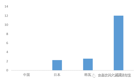但是和别的国家对比来看,我们国家奶酪发展仍处于初期。目前美国每年奶酪消费量约371 万吨,日本和韩国分别为 23万吨和 11 万吨,而我国仅6.9万吨,差距不小。人均消费方面就差的更远了,日本和韩国的人均消费量分别为 2.26 千克和 2.57 千克,我国目前仅为日本和韩国的 1/50,因此,未来提升的空间非常大。