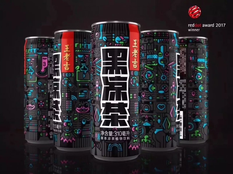 “黑凉茶”还未开售,设计团队就凭借这一包装拿下了 2017 年的红点奖。为9月14日0点在京东开售的“黑凉茶”赚足了噱头。