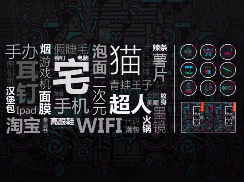 除了彻底颠覆经典红色,黑色的瓶身上还遍布了88种五彩斑斓的小图标,包括箭头、爱心、飞机等88种插画元素,用电玩风格去展现出二次元调性,再加上“宅、猫、二次元、手机、WiFi……”这些被提炼出来的关键词,无一不代表了时下年轻人中最流行的元素及其生活态度。此包装还获得了2017年德国红点奖。
