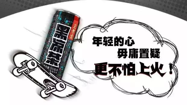 设计师做出的解读是“谨以此致敬永远的极品宅男,献给不怕虐的御姐追求者和有极致钻研精神的中二症们”,Slogan也从“怕上火,喝王老吉”变成了“年轻的心毋庸置疑,更不怕上火”,王老吉追求品牌年轻化的心昭然若揭。