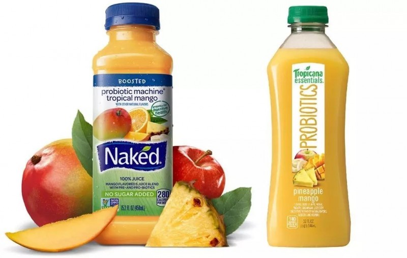 Tropicana Probiotics 于2016年推出上市,将益生菌与100%果汁结合,每份8盎司,能够提供超过10亿活性菌。Naked压榨植物果蔬汁主要为消费者提供新鲜的营养补充,有苹果薰衣草、柑橘柠檬草等口味,无添加糖,无防腐剂,无转基因成分。