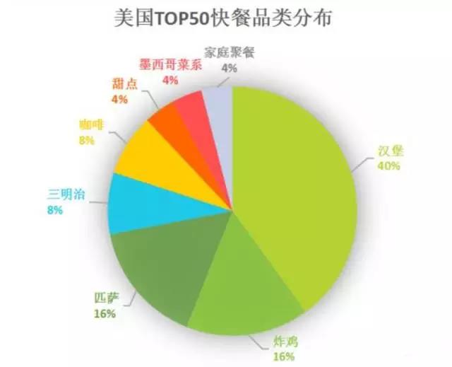 美国餐饮业 TOP50 有一半企业为快餐业态,另外一半为休闲正餐和休闲快餐。