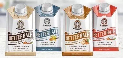 Califia Farms Betterhalf获得最佳新代乳产品称号。当人们将传统杏仁奶或者豆奶混入到现磨咖啡时会发现这样做会使整个饮料凝固,造成不佳的体验。这款以椰子奶油和杏仁为主料的咖啡饮品深得人心,因为它填补了代乳品急需发展的一个空间。在这个诱人的包装盒中,植物乳与咖啡按照1:1的比例顺利地融合在一起,用葵花籽卵磷脂替代大豆卵磷脂,获取了非转基因认证。此外,这款产品不添加蔗糖,以罗汉果作为甜味成分,减糖不减味。