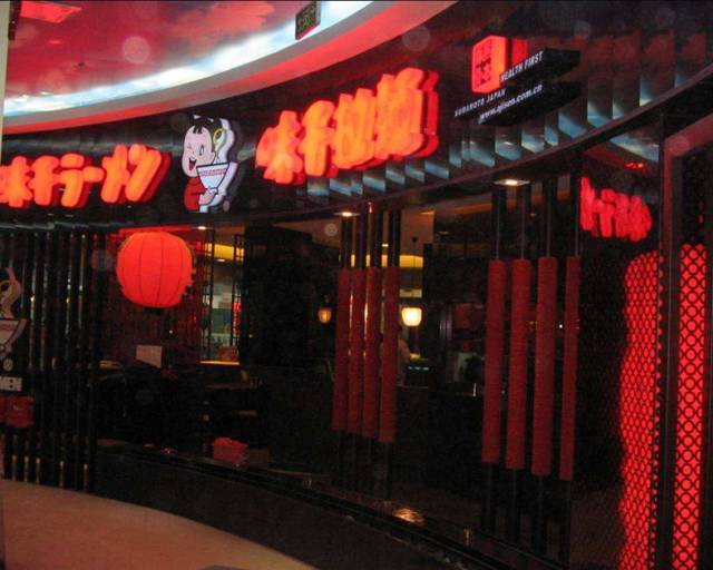 相对应的,国内餐厅的“黑化”,味千拉面是比较早的,大红大黑的搭配加上日系拉面的特定品类,当时让人印象深刻。
