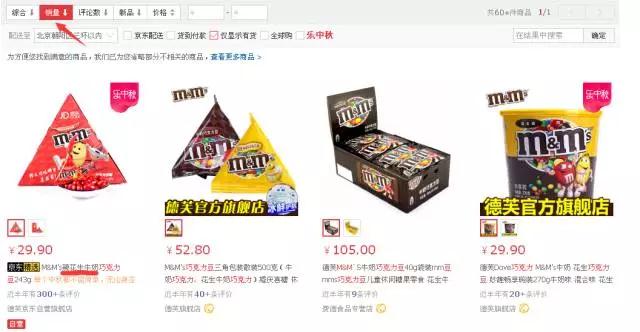 Mars(玛氏)公司与京东合作,在京东上销售该款产品,并且在短短十几天内销量迅速爬升至第一位(搜索M&M豆),并且获得一致好评。