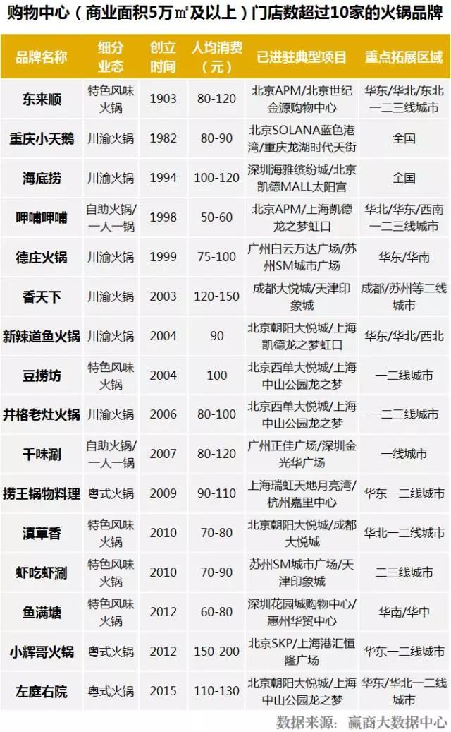 购物中心火锅品牌分布特征