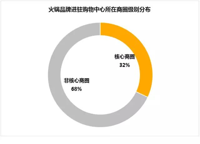 从商圈级别分布来看,这 2350 家火锅门店有68%处于非核心商圈, 32%在核心商圈;相较于核心商圈,非核心商圈租金水平、经营成本相对较低,因此是火锅品牌重点拓展的区域。