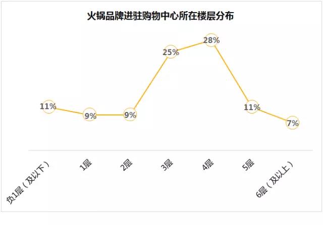 火锅品牌入驻购物中心第 4 层的最多,3 层次之
