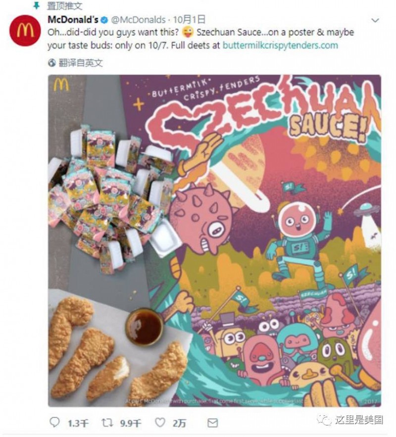 麦当劳:“哦,你们想要它吗?在海报上或是你的嘴里的四川辣酱。仅限10月7日。”