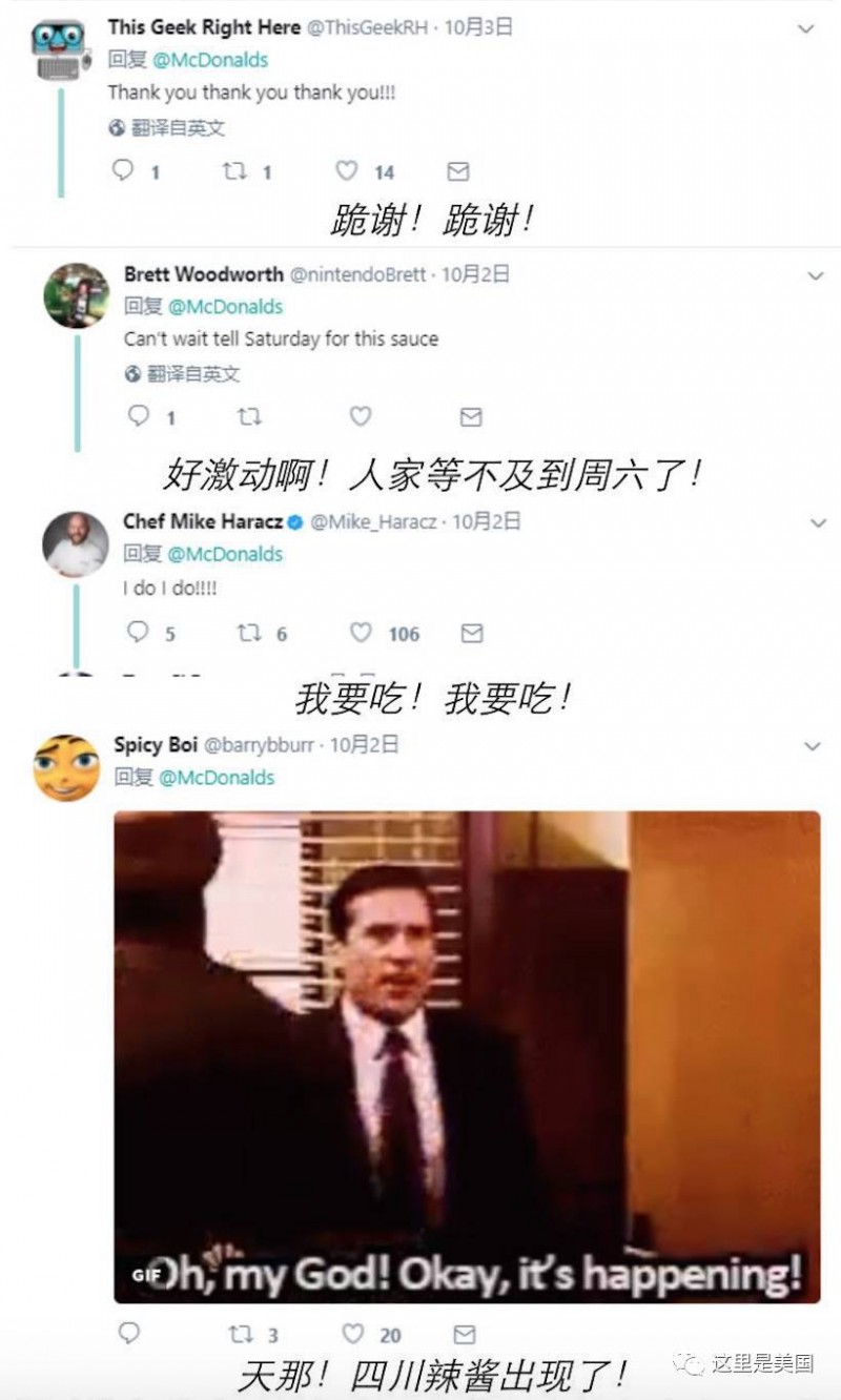 伴随着各种欢呼的还有一些美国人的心碎声。因为供应四川辣酱的麦当劳并不多,不是所有城市的麦当劳都会供应......