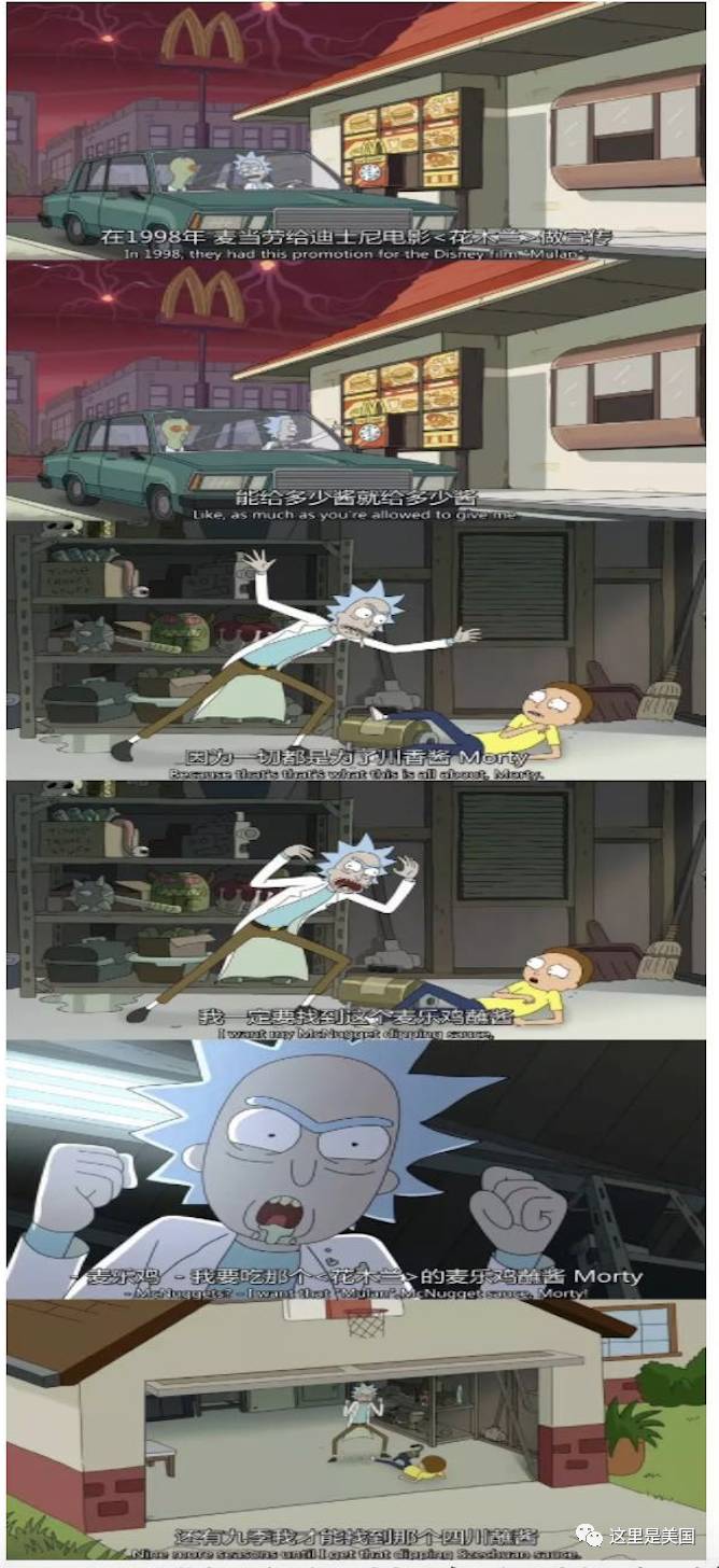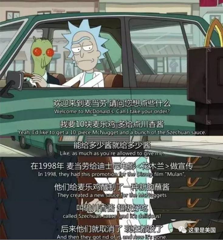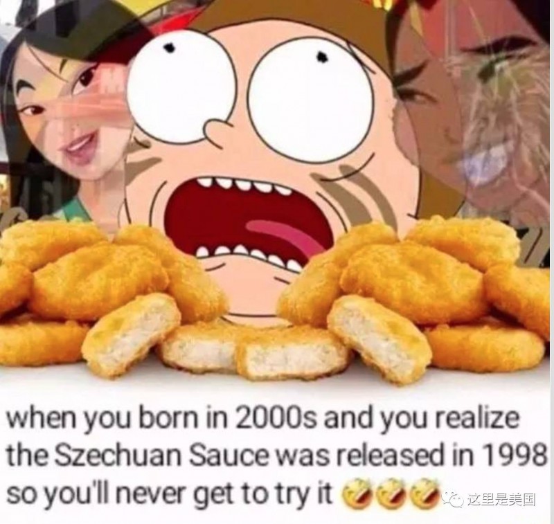 《瑞克和莫蒂》第三季第一集中,剧里的男主角——天才疯狂科学家瑞克,在逃出银河联邦监狱的路上,还不忘奔去麦当劳买了 10 块麦乐鸡块,并点名要了1998 年的这款限量版四川辣酱。