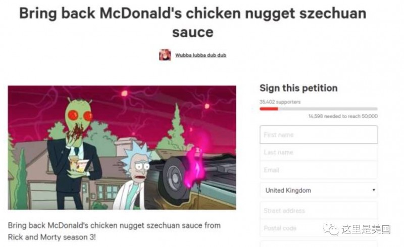 既然自己做不了,热情高涨的美国人开水向麦当劳请愿,要求麦当劳重新供应四川辣酱,一度有将近5万名粉丝签名。