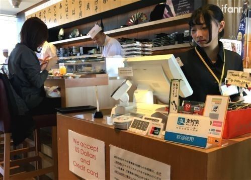 日本一户餐饮店店主表示,“现在我们接受支付宝和微信作为除信用卡、借记卡及现金以外的一种支付方式。”