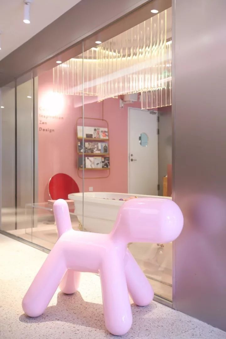 在空间设计上,粉色系为主色调,镂空的隔断使得整个店面视野更加开阔大气,每面墙每个小装饰都尽显粉嫩嫩的少女气息,就边店里的小哥哥小姐姐们也换上了粉粉的工作服。