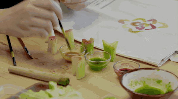 用紫薯片染制日本服饰“甚平”。