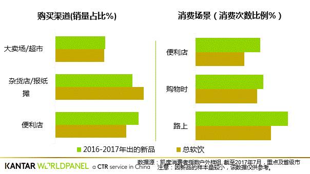 凯度消费者指数在外零食与饮料消费样组对2016和2017年上市的软饮新品进行了一番研究,得到以下五点启示: