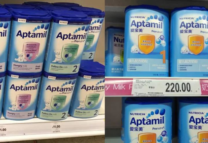 中英两国超市的爱他美婴幼儿配方奶粉价格对比