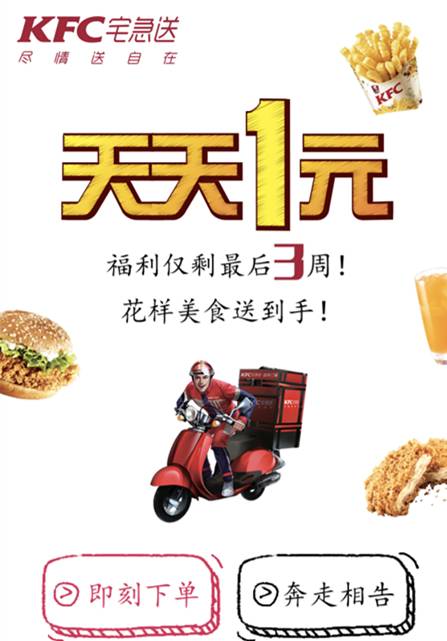 10月9日,KFC宅急送“天天1元”活动上线,看似简单的一场促销活动,却被他们玩出了新花样。