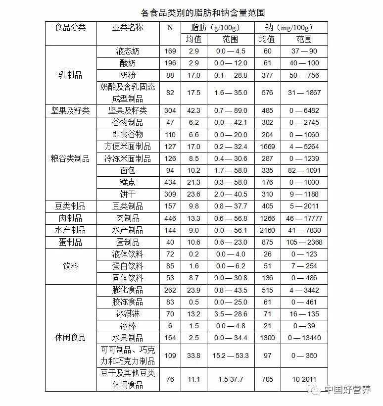 从市场调查结果来看,同样的产品,糖、盐和脂肪含量相差很大,例如每100克面包中的钠含量从82-1091mg 不等,每100克膨化食品中钠的含量从4mg到3442mg,加工肉类从46mg到17777mg。可以看出有很大空间调整和完善。