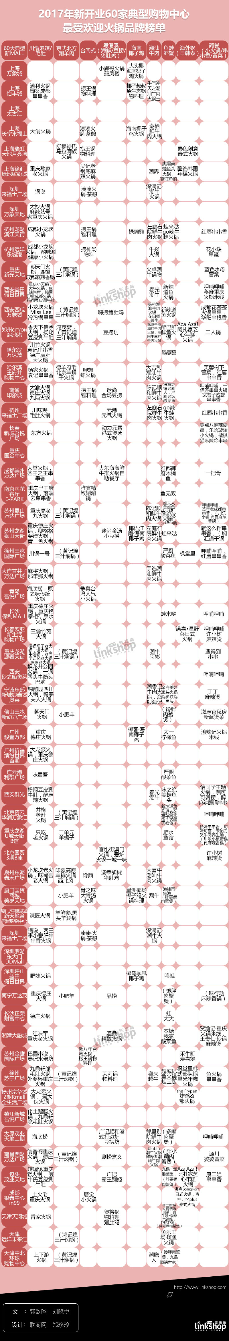 大家越来越喜欢吃火锅,但各式各样的火锅争奇斗艳让人眼花缭乱。选择这么多,哪些才是最有特色最受食客偏爱的?哪些又是最受购物中心招商部门青睐的呢?下面就请跟随联商网研究中心一起去探寻今年一至九月新开业的知名发展商旗下60家最具代表性的大型购物中心引入了哪些火锅品牌。