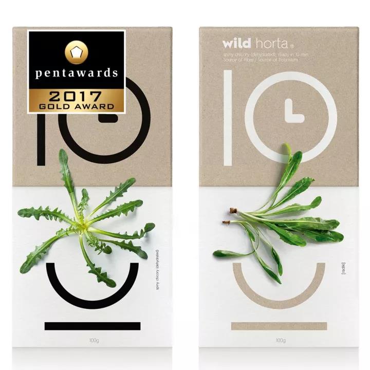 该包装是为品牌Gaea – Horta而设计的,包装的是传统、原始的希腊食材——野生食用绿色植物。包装上使用的信息图表和图像清晰的体现出所用的野生原材料:“Stamnagathi”和“Armyriki”,同时包装图像也指出建议烹饪制作食用该食物,所需时间10分钟。 整体体现了传统和自然、效率和健康生活的理念。