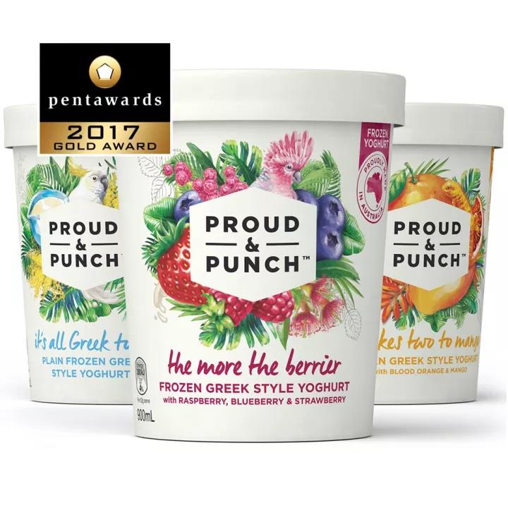 这款包装是为Proud & Punch品牌而设计的。该冰激凌包装使产品原料得以充分展示,一个产品是多种蔬菜、水果口味的结合,颜色鲜艳自然,500ML的尺寸适合一起分享食用。