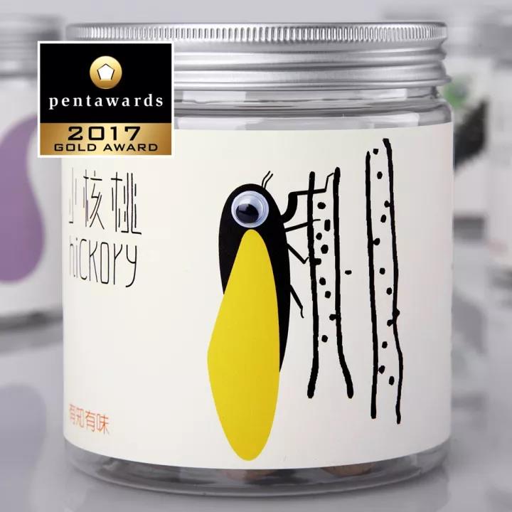 该包装是为小核桃产品设计的一款罐装包装。软罐头质感,可爱的简笔画设计、简洁的色块搭配加上眼睛的灵动感,让整个包装看上去简洁、清新而又不失趣味性。