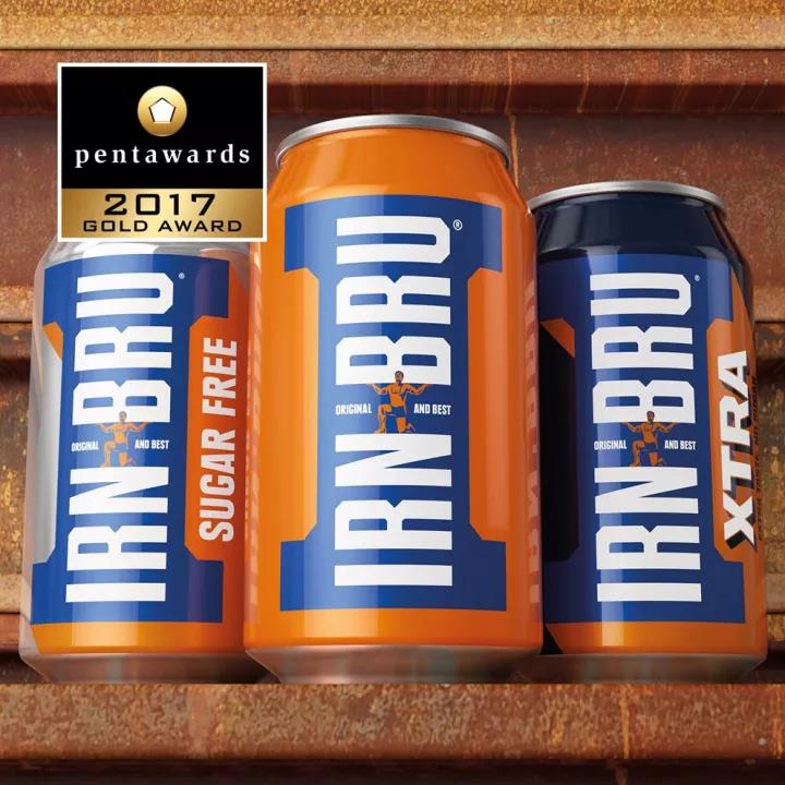 IRN-BRU可以说是苏格兰的一种民族饮料了,也是苏格兰最畅销的软饮料。此次IRN-BRU的包装外观颜色上延续了其过去鲜橙黄色的色调应用,在品牌名中巧妙的加入了一个向上托举的运动员形象,使得产品的运动功能性更为直观。