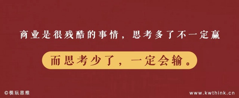 筷玩思维认为,在餐饮的红海市场中,做商业没有快慢之分,只有做得好坏之分,你觉得自己一定要先往前冲,那么你一定还只是个小兵,冲的时候不能让自己从小兵转到大将,最终先掉线的一定是你,因为你还没有准备好。