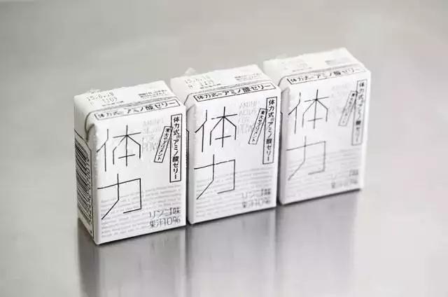这是东京大学于1992年开始延续至今的一项关于摄取氨基酸的营养研究饮品,原研哉用了细线条字体,文字设计得独特、简洁、有力,灰、黑、白三色在该包装上运用得相当舒服得当。