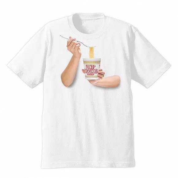 相较而言,图上那款假装在吃泡面的T恤就洋溢着一种让人摸不着头脑的“没用”感。这是日清发布的官方周边,根据男女尺寸不同定制了不同色号、粗细的吃泡面胳膊,试图打造一种非常逼真的吃泡面的错觉。目前T恤在日清网店内售卖,售价2138日元(折合人民币约126元)。