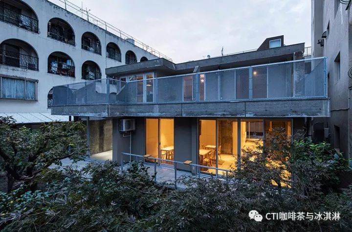 在陈旧水泥与铁网组成的外观下,透出的黄光让人感到油然而生的安定。